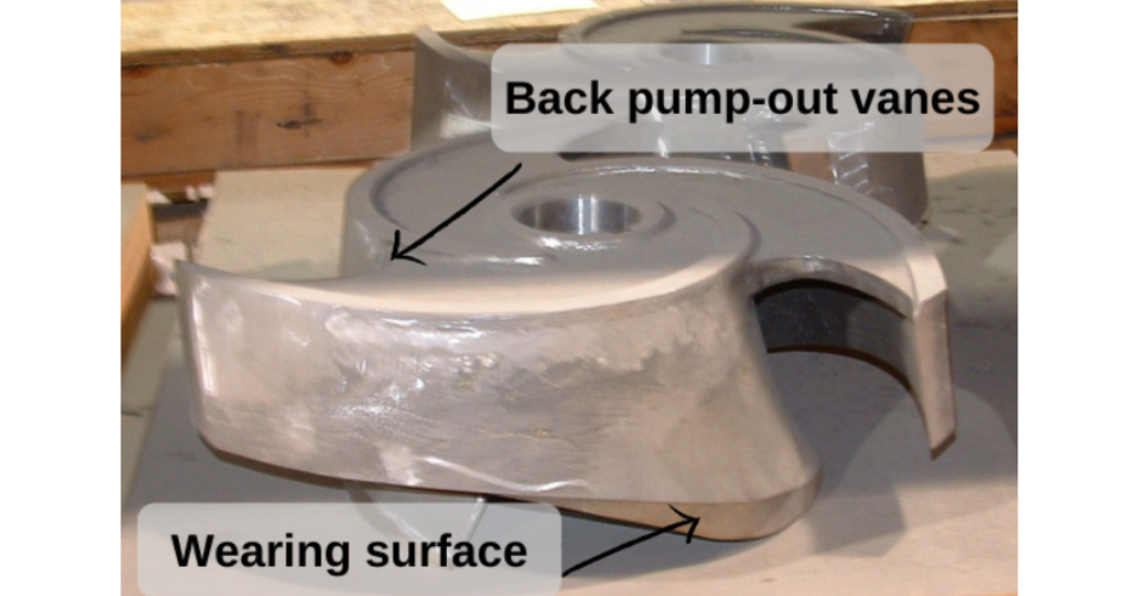 然而,隨著葉輪向吸入耐磨板的方向調(diào)整,葉輪后面的間隙會增加。大多數(shù)開式葉輪在非泵送側(cè)都有小葉片,稱為“背抽葉片”。這些葉片就像另一個(gè)離心泵一樣,其目的是保持填料函的低壓。如果沒有這些葉片,填料函壓力將接近泵的排放壓力,這可能導(dǎo)致填料污染和填料壽命降低。