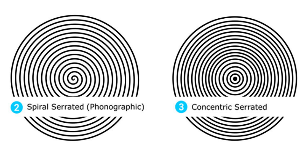 螺旋鋸齒(音像)飾面比同心鋸齒飾面更難密封。密封墊材料的完全流動必須以留聲光飾面到達“谷”表面的底部,以避免從螺旋的一端到外部的螺旋泄漏路徑。