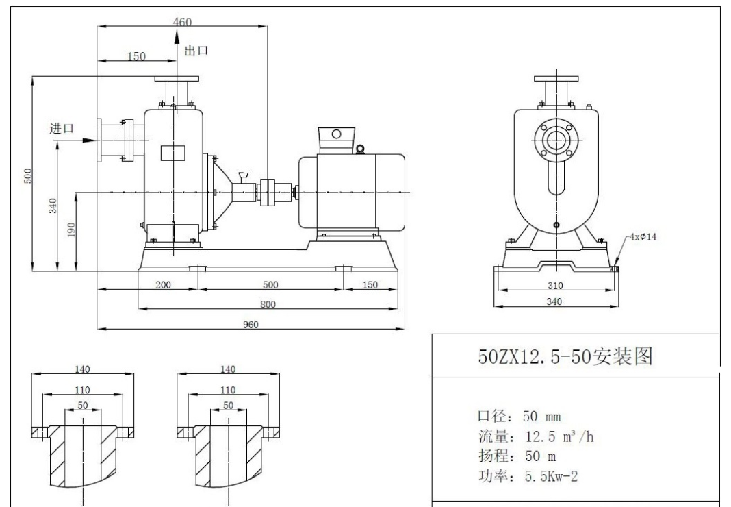 50ZX12.5-50自吸泵技術參數_外形安裝尺寸