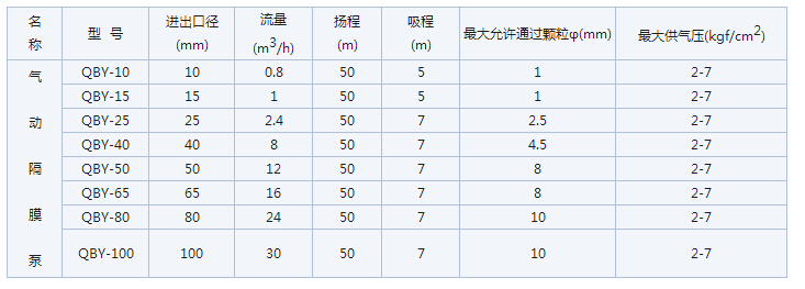 QBY不銹鋼氣動(dòng)隔膜泵性能參數(shù)表